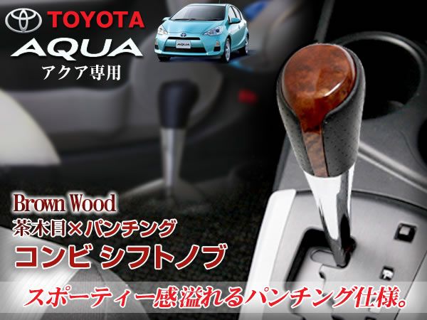 - NHP10系 アクア 前期 シフトノブ 茶木目×パンチング ウッド調