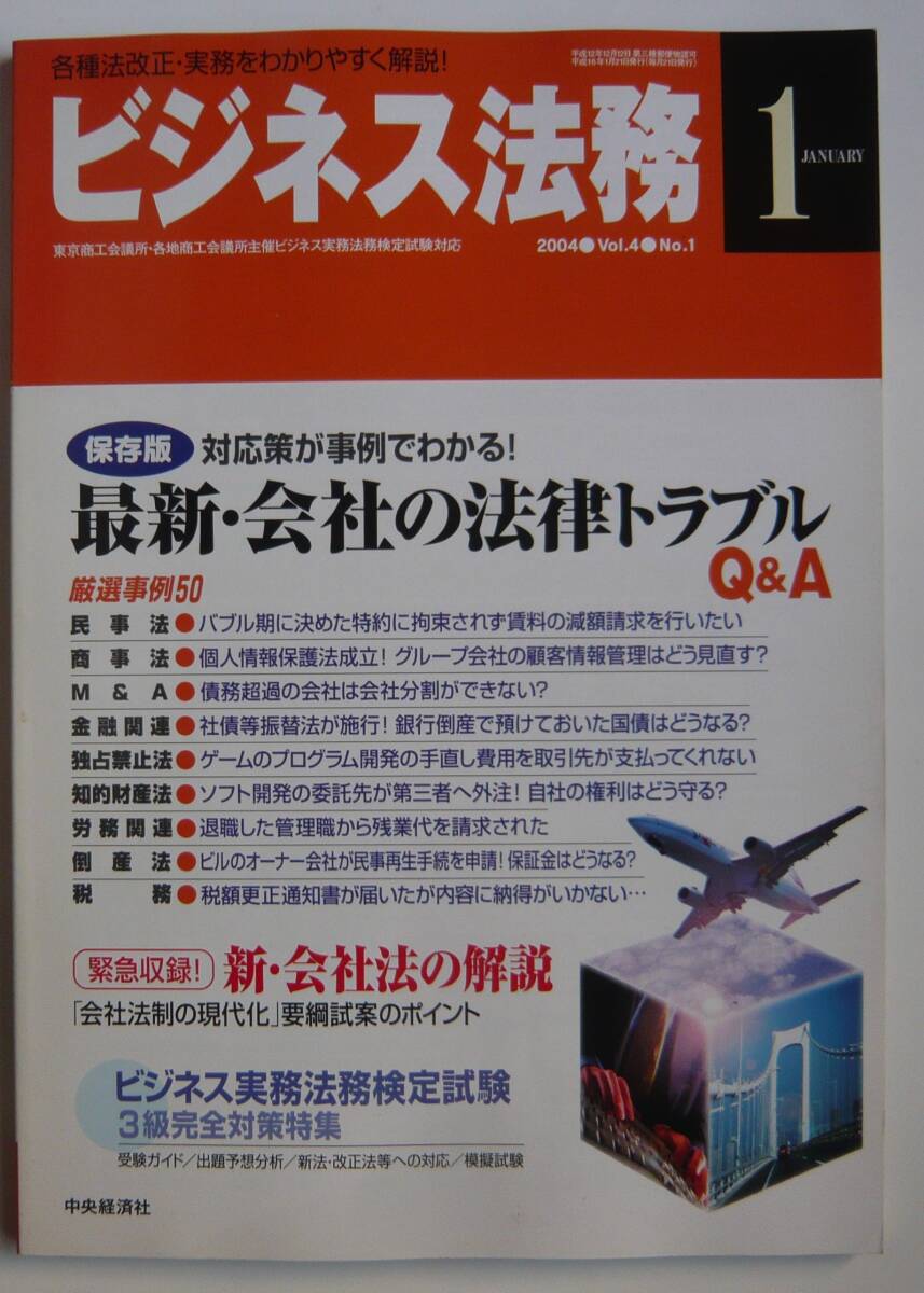 - 【入手困難本!】 ー2004年1月号ー『ビジネス法務(第四巻第一号)』中央経済社