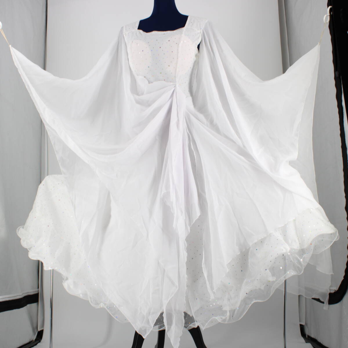 - 『送料無料』【社交ダンス衣装】ワンピース ドレス 白 ホワイト キラキラ ホログラム 清楚 シンプル 無地 清潔感 上品 気品 高級感