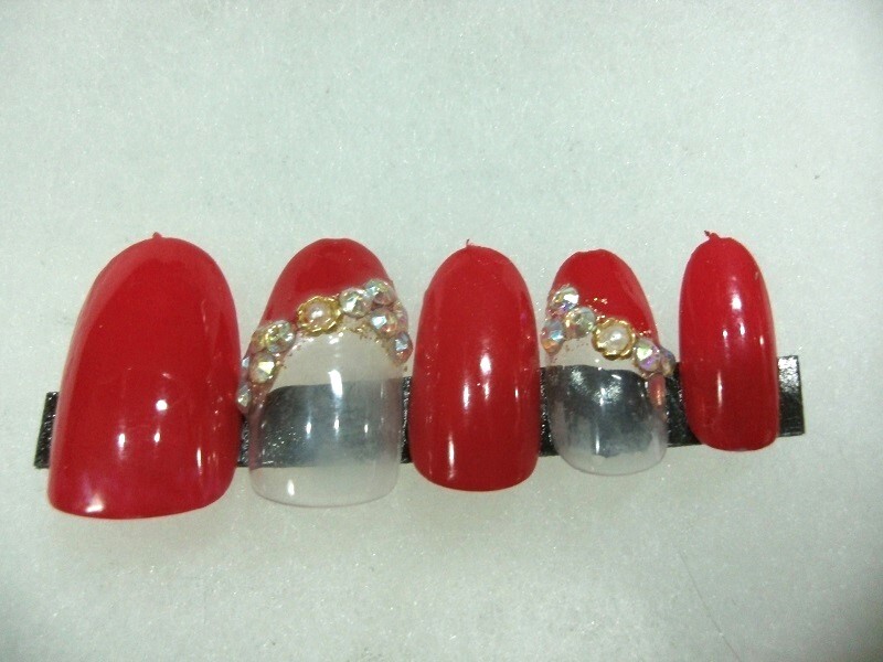 - ・(定型外orクリックポスト発送込み) ナナメフレンチにストーンでリボンでネイルチップ ジェル使用作品