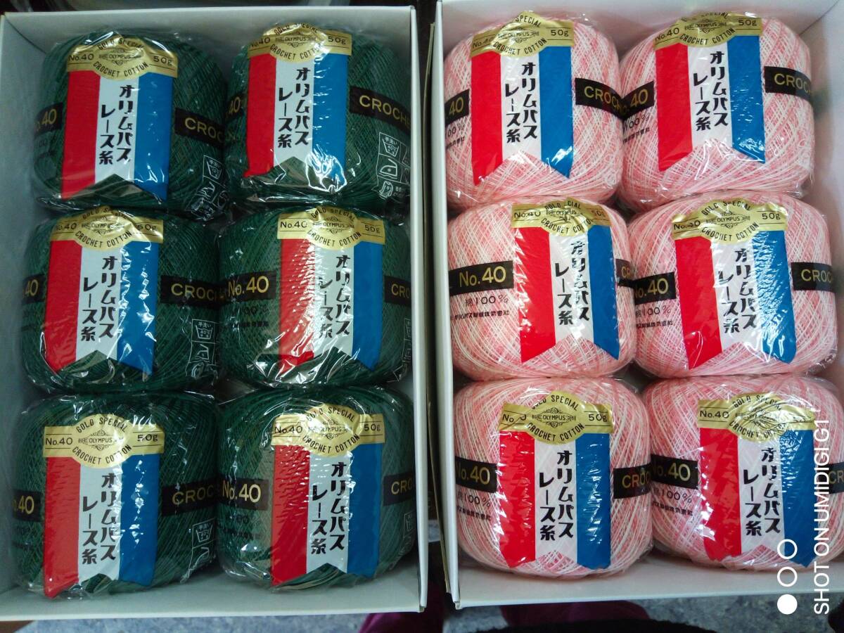 - オリンパスレース糸#40/50g 257番深緑色と38番ピンクぼかしの2箱セット
