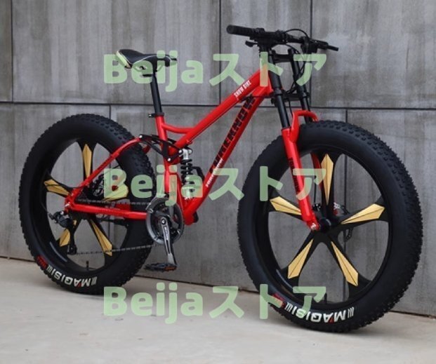 - 強くお勧め マウンテンバイク 26インチファットタイヤハードテイル 7速 デュアルサスペンションフレームとサスペンションフォーク F1547
