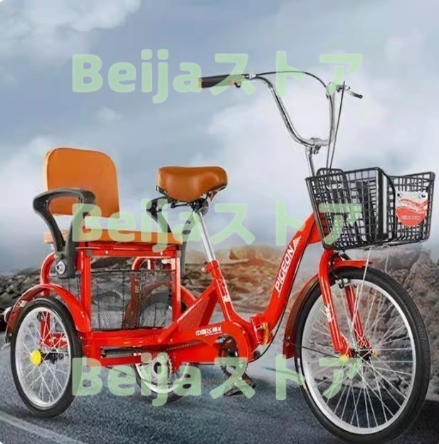 - 実用品!前輪20インチ・後輪16インチ 大容量 後カゴ付 大人用 三輪自転車 収納便利 高齢者用 高さ調節可能 組立品 初心者の自転車 104
