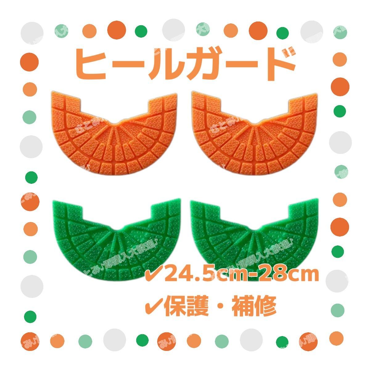 - ヒールガード 4枚セット 2足分 ソールガード スニーカー プロテクター 保護 補修 24.5cm-28cm オレンジ グリーン