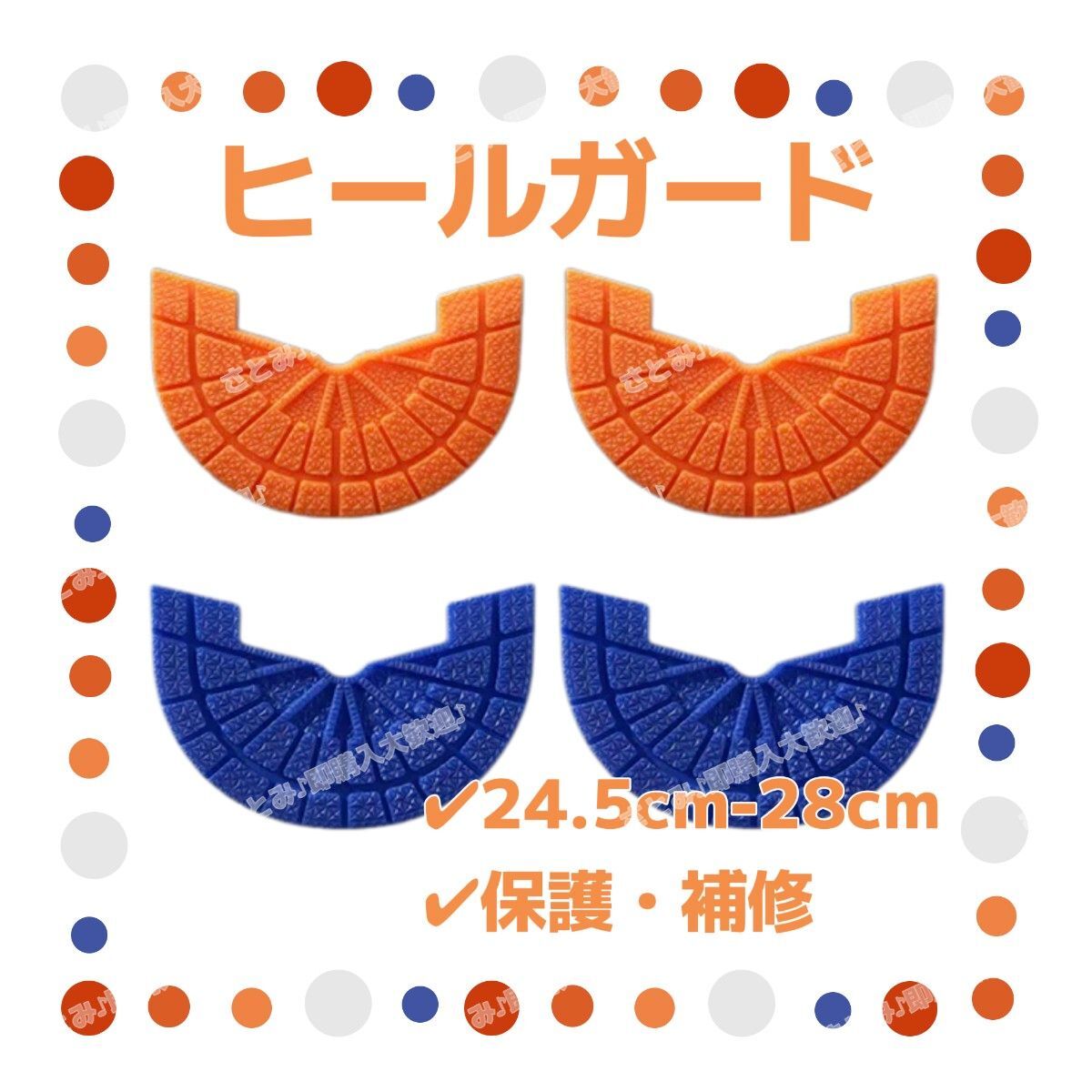 - ヒールガード 4枚セット 2足分 ソールガード スニーカー プロテクター 保護 補修 24.5cm-28cm オレンジ ブルー