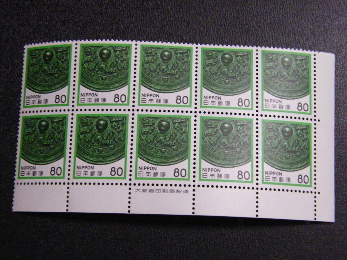 - 人物画像鏡 80円 銘版「大蔵省印刷局」 10枚ブロック 未使用 1980年シリーズ