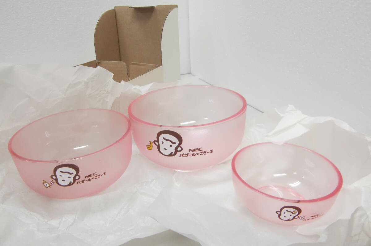 - 非売品 バザールでござーる 茶わん ピンク 大中小3個セット NEC 販売促進 未使用