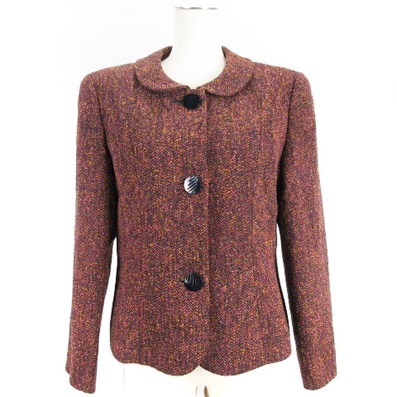 > ピエールカルダン Pierre Cardin ネップ ツイード ジャケット 11 ボルドー 250110E ■GY99 レディース