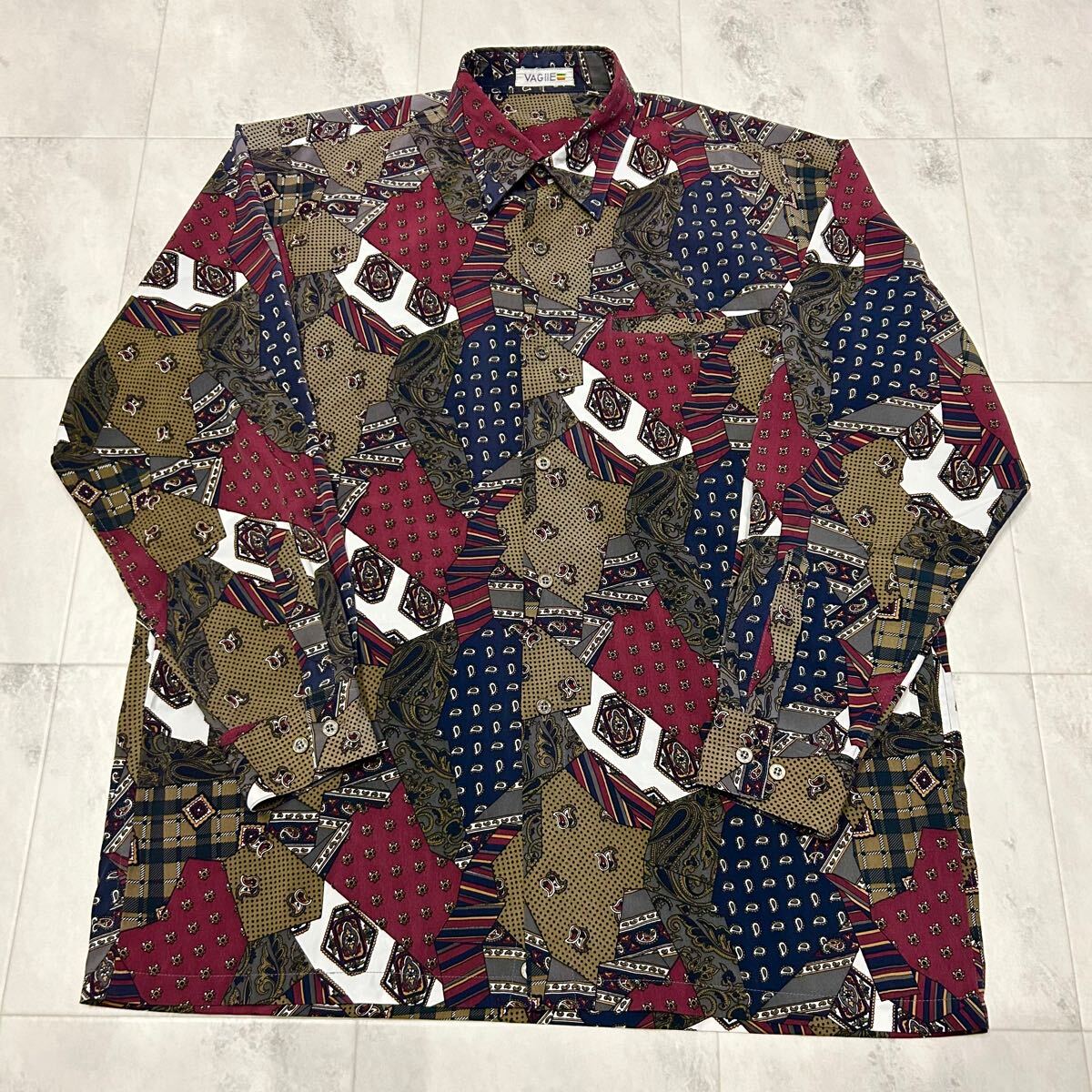 - VAGILE 総柄 柄シャツ 和柄 ペイズリー クレイジー レトロ アート ビンテージ 長袖シャツ