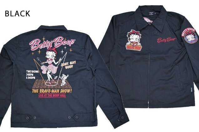 - BR×BETTYコラボ ツイルスイングトップジャケット◆The BRAVE-MAN ブラックXLサイズ BBB-2504 ブレイブマン 刺繍 ベティーちゃん ブルゾン