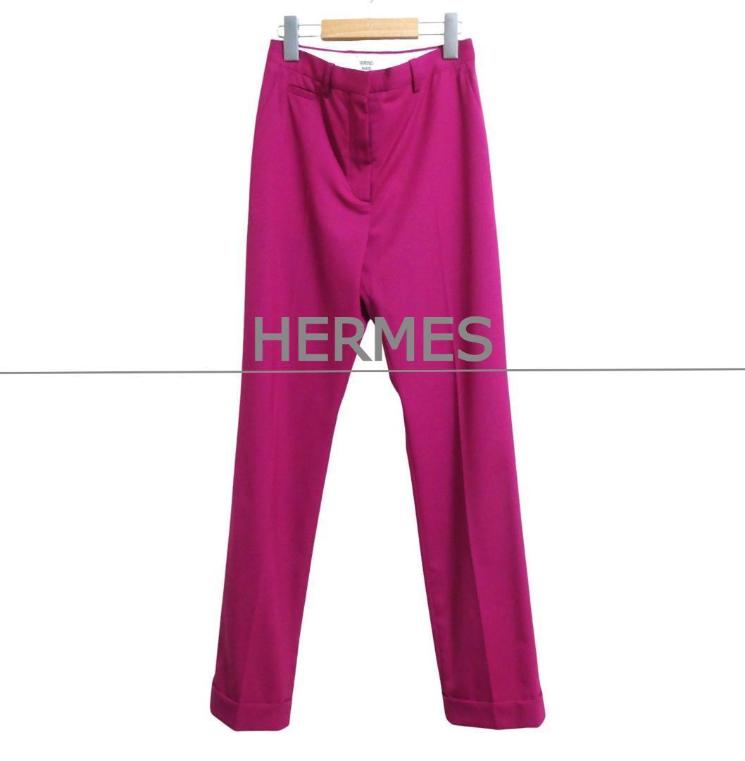 - 極美品 HERMES エルメス サイズ34 96-7406 裾ダブル センタープレス ストレート パンツ スラックス ピンク系