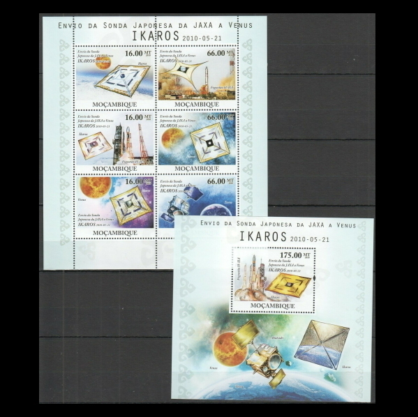 - ■モザンビーク切手 2010年 日本の宇宙開発 / イカロス・IKAROS / 小型ソーラー電力セイル / JAXA シート+6種シート