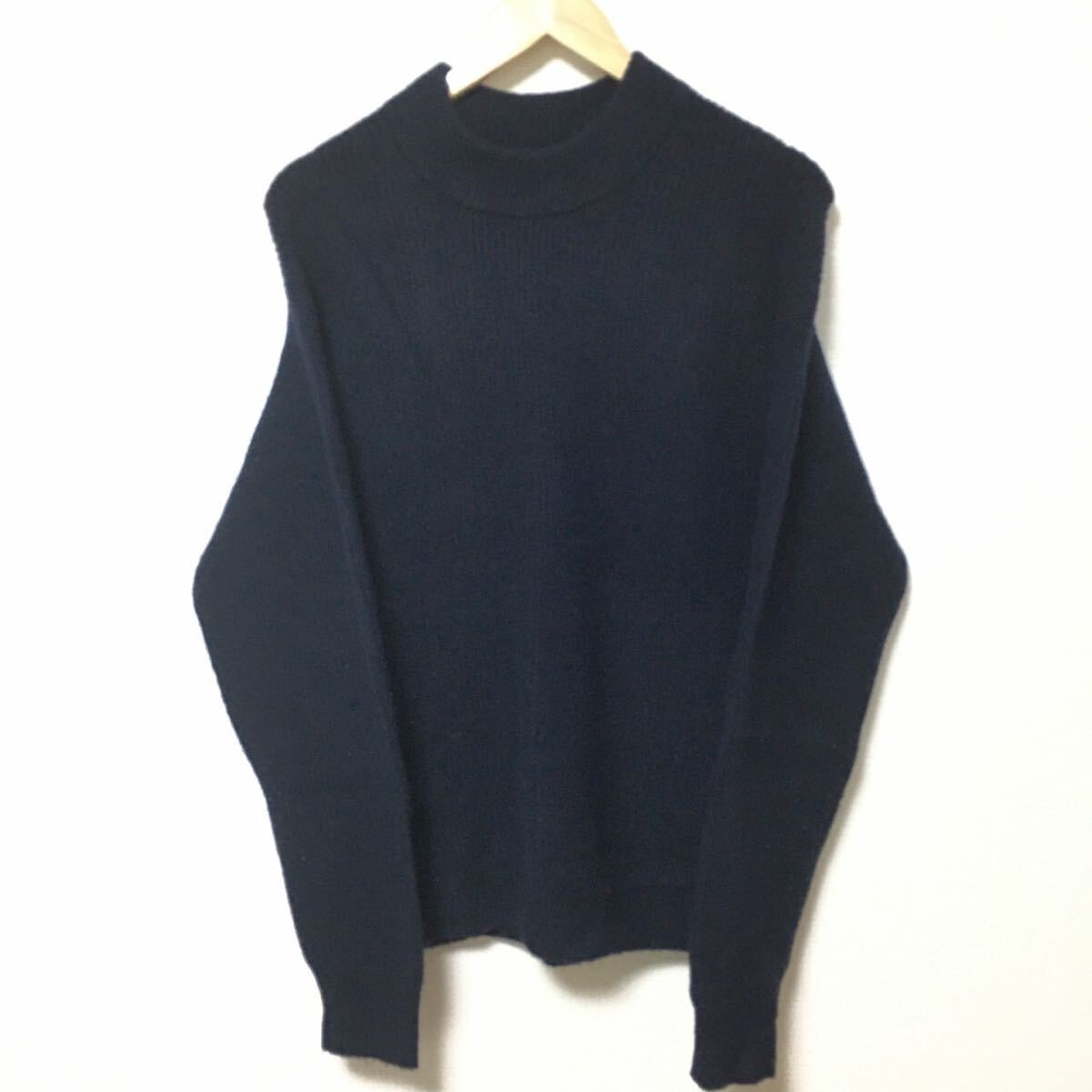 > 秋冬の定番◎【UNIQLO】ユニクロ スフレヤーンモックネックセーター ニット 紺 畦ステッチ シンプル カジュアル メンズ サイズM/Y24263fF
