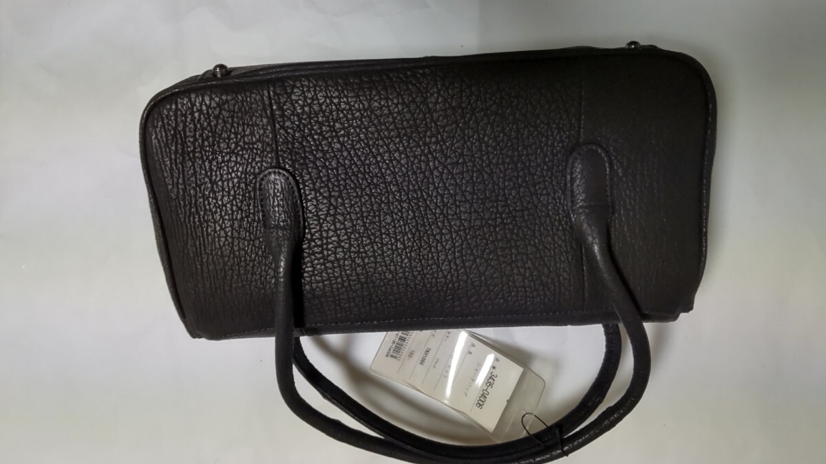 - 未使用に近い 高級レディースハンドバッグ、和装バッグ シャ―クレザー・サメ革 ブラック タグ付き 送料無料