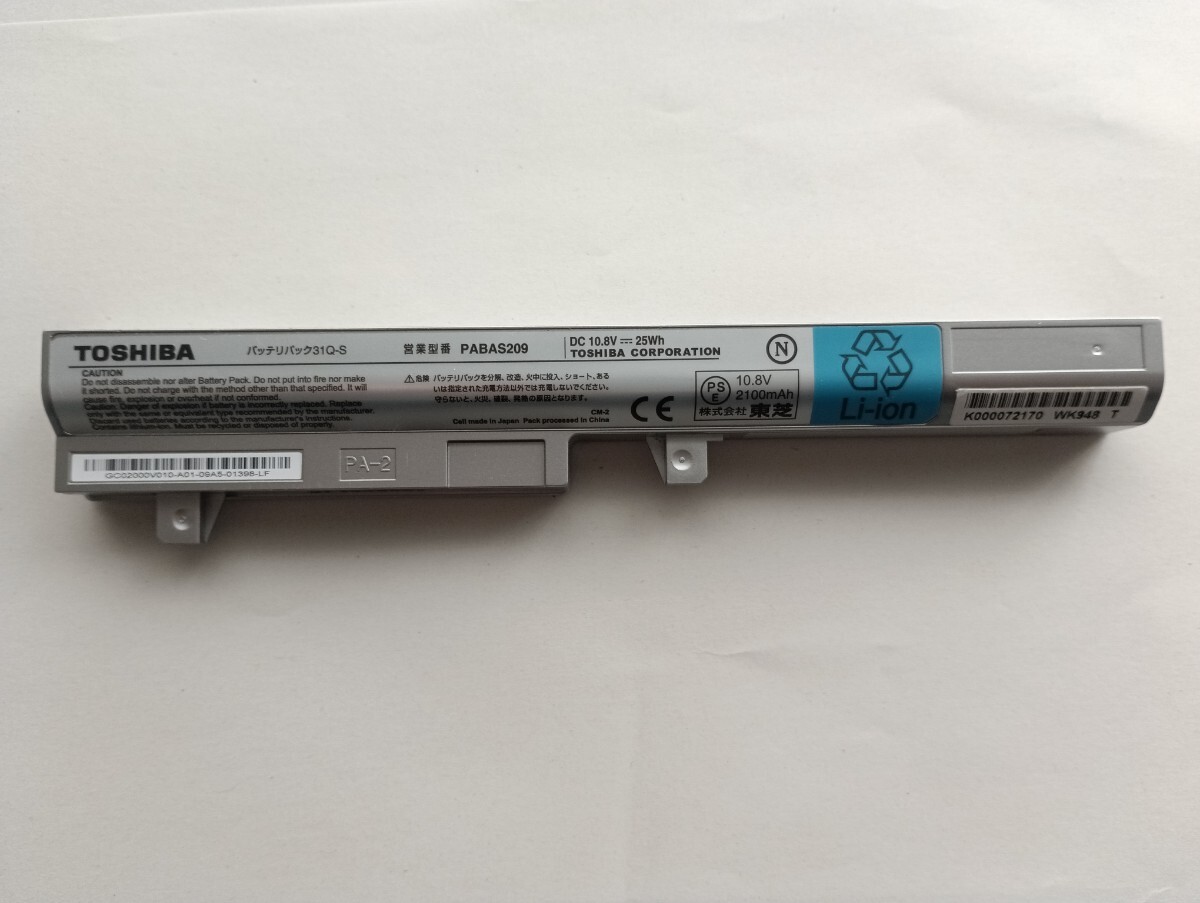 - バッテリパック 31Q-S TOSHIBA Dynabook PABAS209 リチウムイオンバッテリー UX/J・K シリーズ用 10.8V 25Wh 東芝