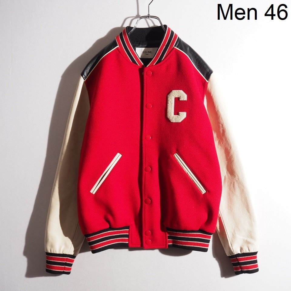 > C3513P ▼CELINE セリーヌ▼ Over Size Teddy Jacket レザー切り替え テディジャケット レッド 46 / Cロゴ 2V56D896C 秋冬 rb mks