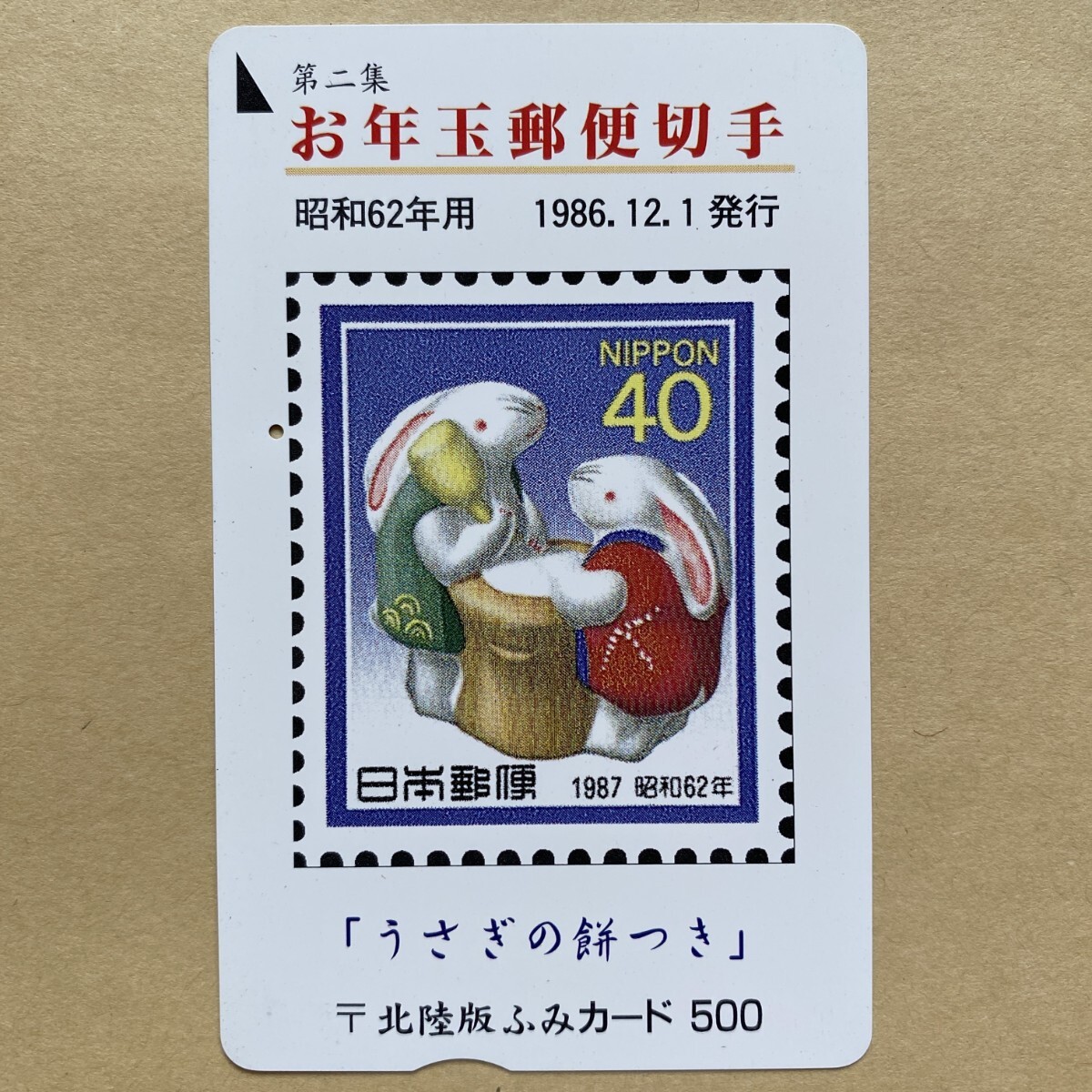 - 【使用済】 ふみカード 北陸版 第二集 お年玉郵便切手 昭和62年用 1986.12.1発行 「うさぎの餅つき」