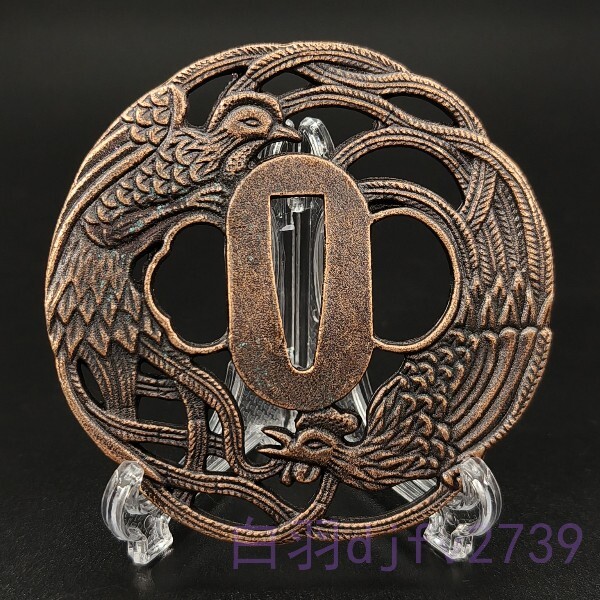 - SY196 日本刀装具 刀鍔 朱雀図 合金製 現代品 つば ツバ 刀剣美術 重さ約95G 厚さ約4mm
