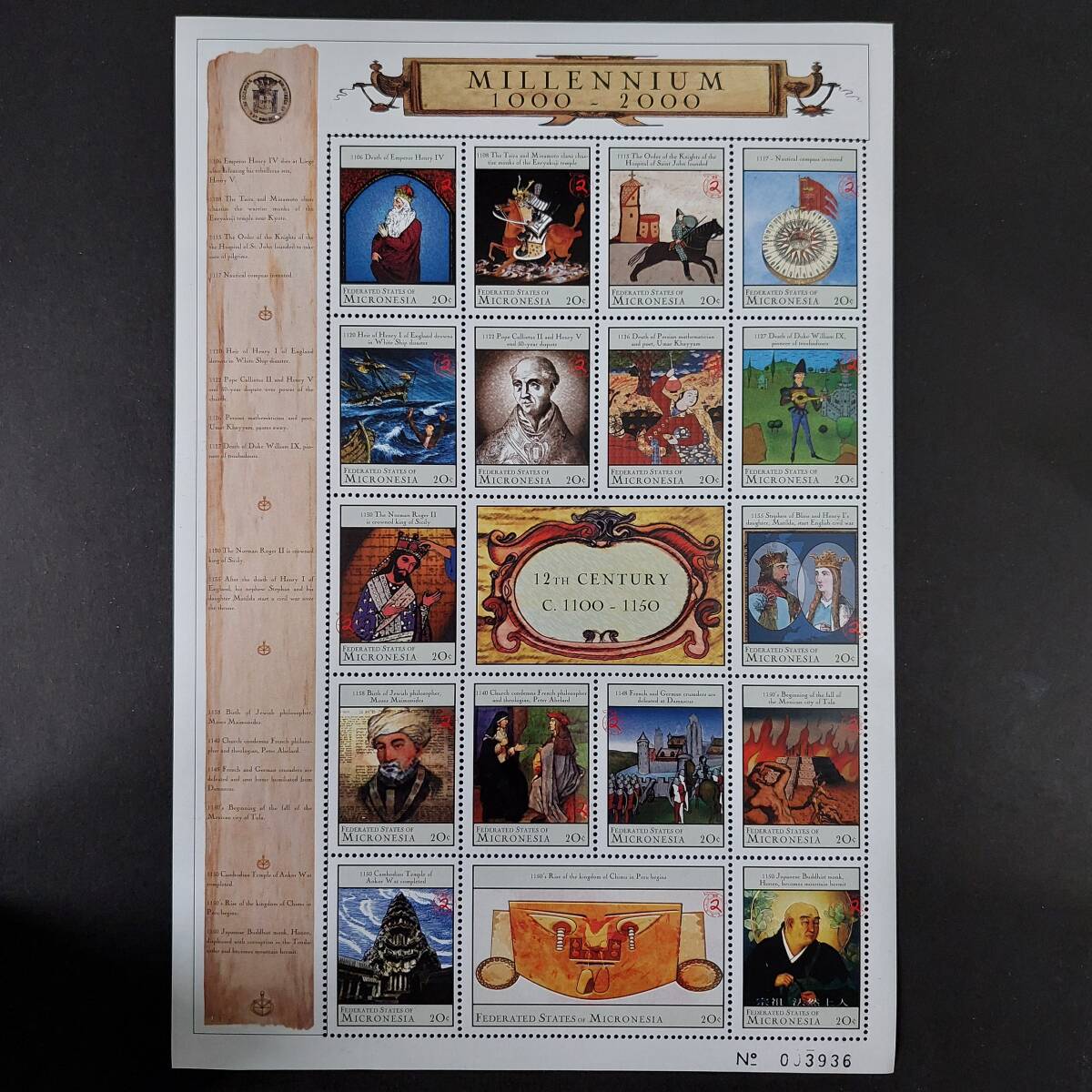 > K470「ミレニアム2000 記念切手シート(1100-1150年)『世界が選んだ世界のビッグイベント・世相 BEST17』」発行:ミクロネシア 1999年 未使用