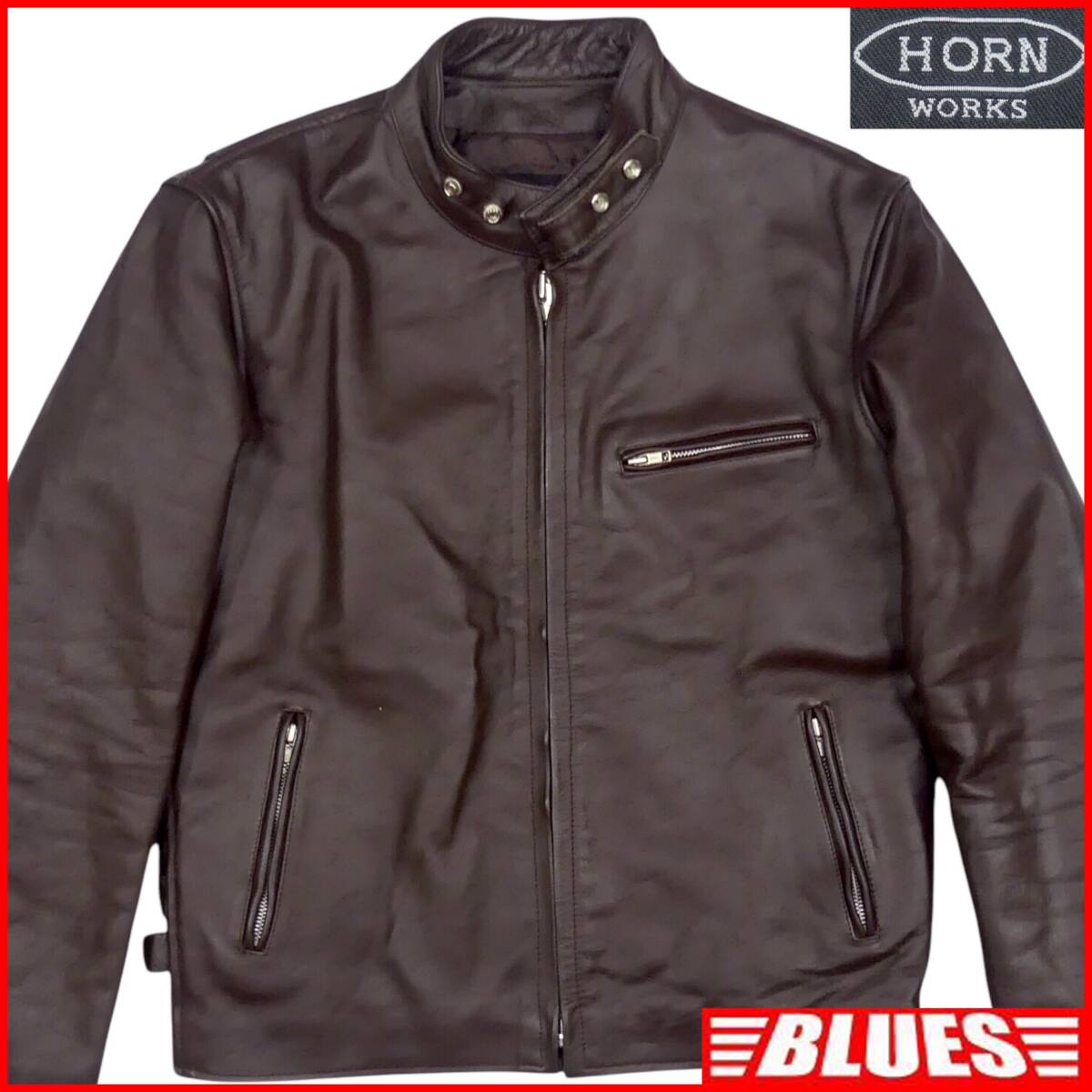 > 即決★HORN WORKS★メンズ XL レザーライダースジャケット ホーンワークス 茶 本革 シングル 本皮 パンクロック ライディング ツーリング