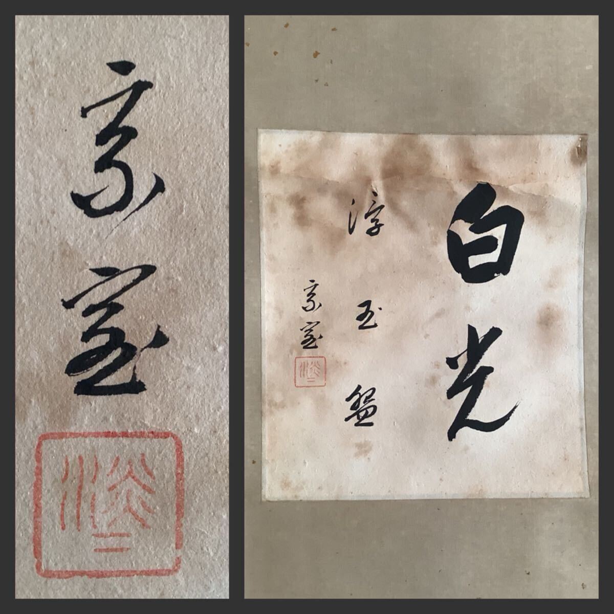 > 【模写】掛軸Ja738B[千宗室(淡々斎)白光浮玉盞]紙本 書いたもの 木箱/裏千家14代家元 茶道 茶掛 茶道具 茶人 碩叟