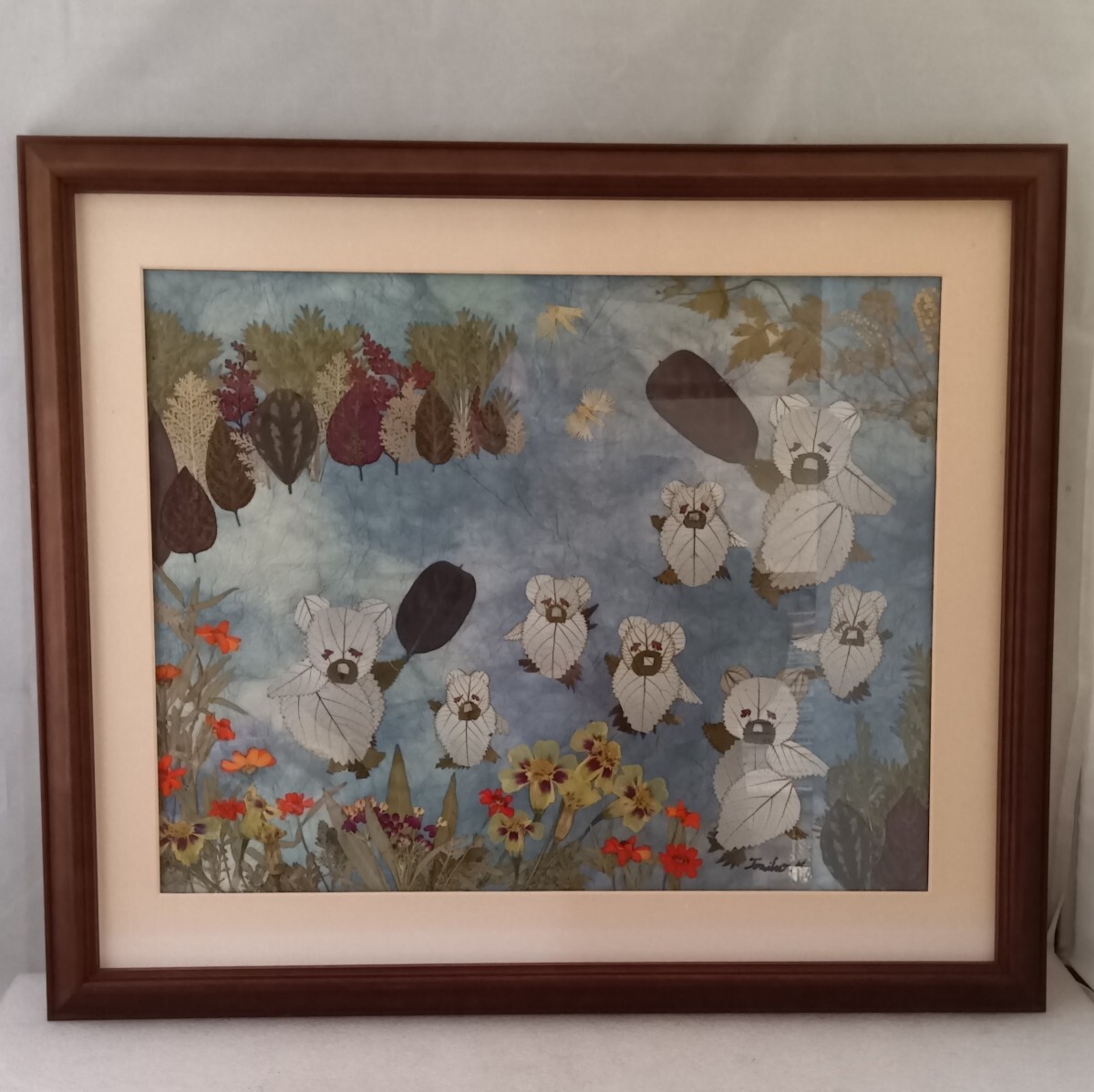 > 押し花アート 押し花絵 額装 壁掛け 森のくまさん 熊 プレストフラワー アートフラワー ハンドクラフト インテリア 可愛い ぷらえり117 45