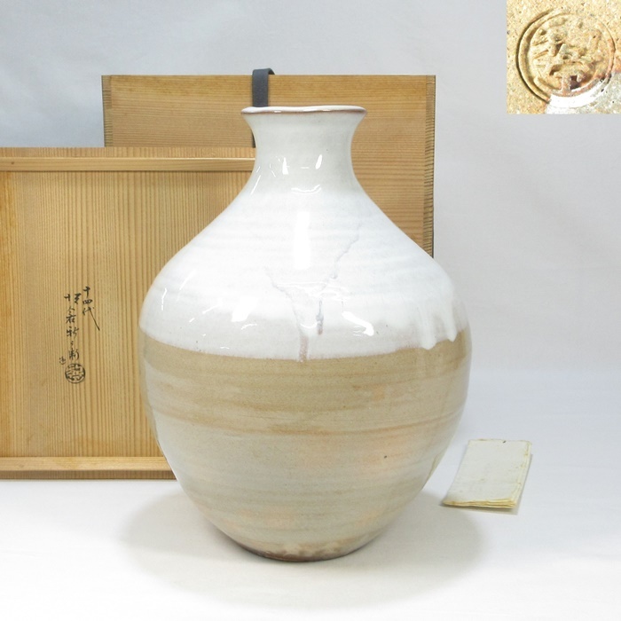 > 【A0761】萩焼 十四代 坂倉新兵衛 萩 壺 花入 花器 高さ29.5cm 共箱 栞付き 即決 送料無料