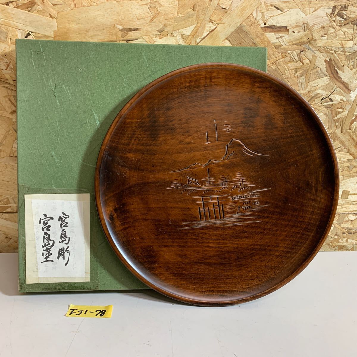 - 丸盆 宮島彫 宮島塗り 木製 工芸品 天然木 お盆 茶道具 菓子器 伝統工芸 FJ1-78