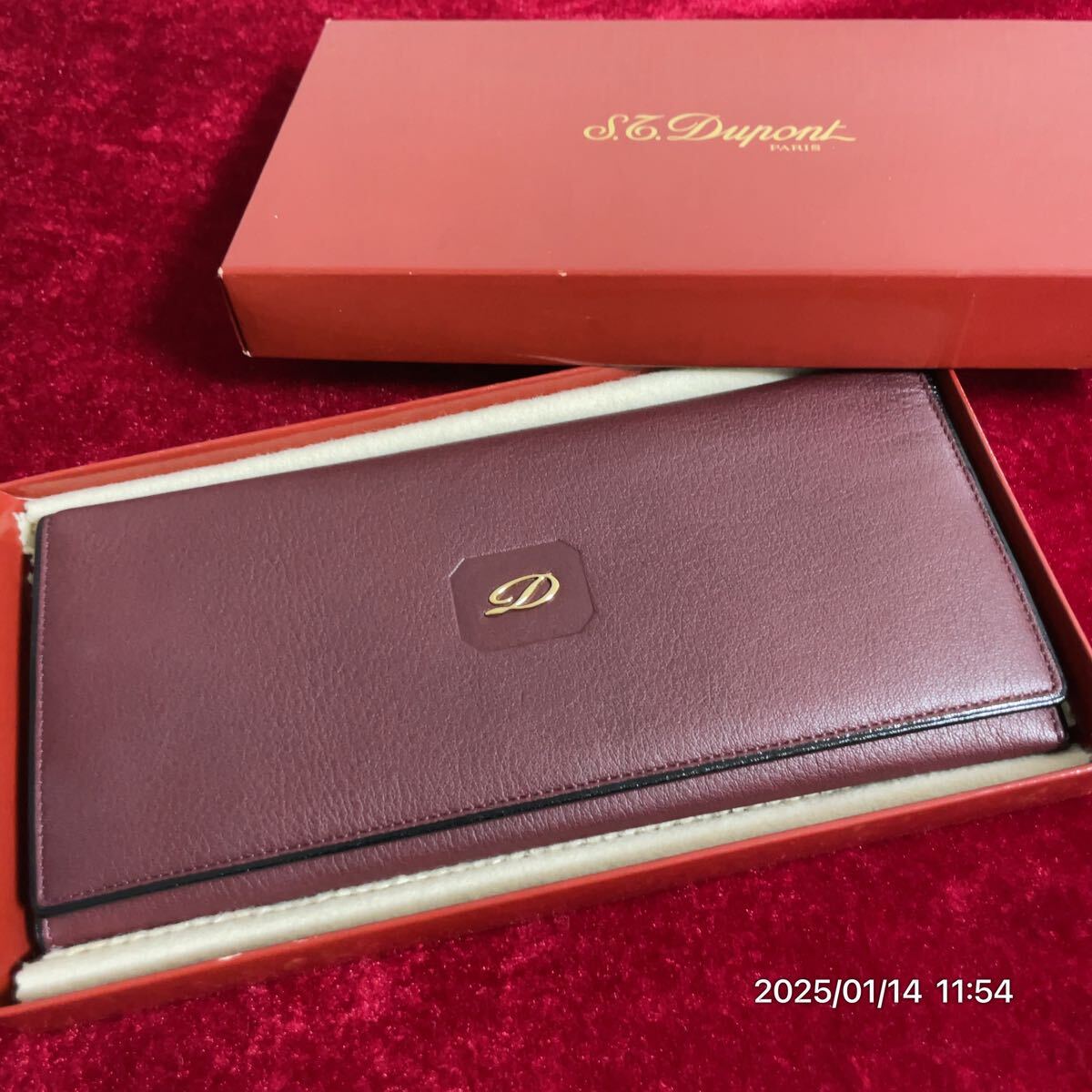 - 未使用 S.T Dupont デュポン Dロゴ ワインレッドカラー レザー 革 二つ折りウォレット 長財布 箱付き