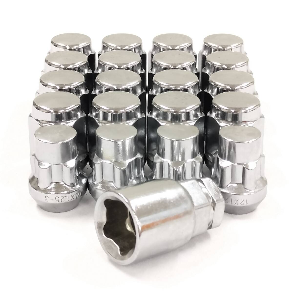 - ホイールナット ロックナットセット M12 x P1.25 21HEX 35mm メッキ つば付き 袋タイプ 20個セット ニッサン スバル スズキ 1212521+182