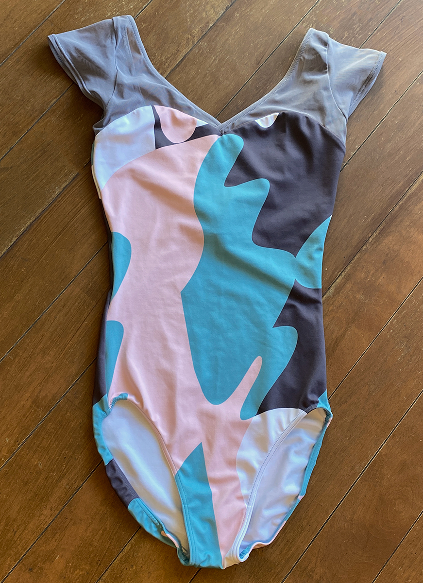 > stina スティナ 大人バレエ レオタード Sサイズ type H half sleeve earth turquoise pink ターコイズ×ピンク アース柄 フレンチスリーブ