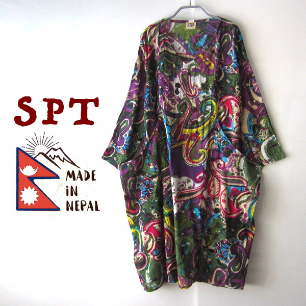 - 美品 ネパール製 SPT★ 美しいエスニックプリント 薄手ワンピース