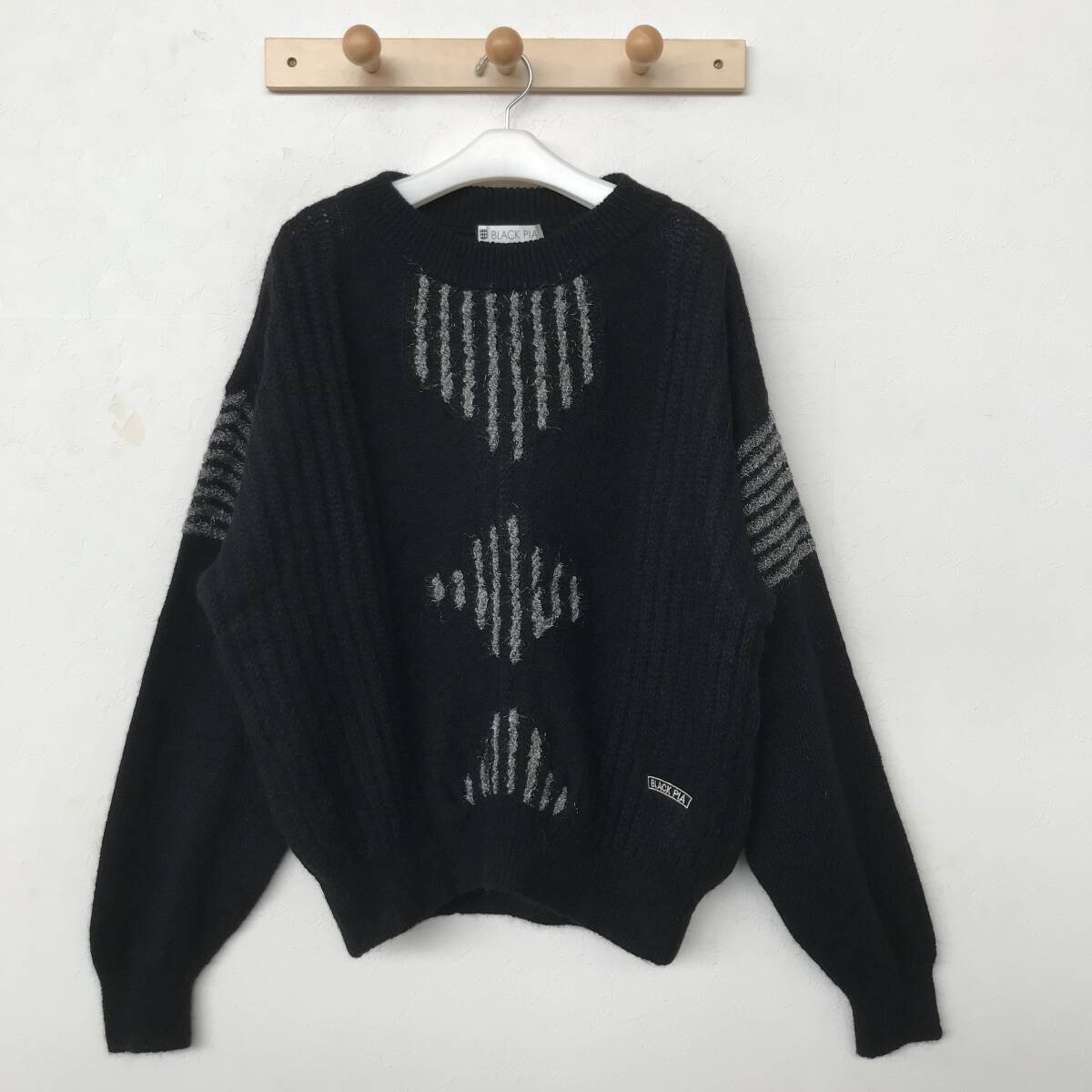 > 80s BLACK PIA ブラックピア ライカ製 メンズ オーバーサイズ シルバーラメ使い ニットセーター 美品 size L