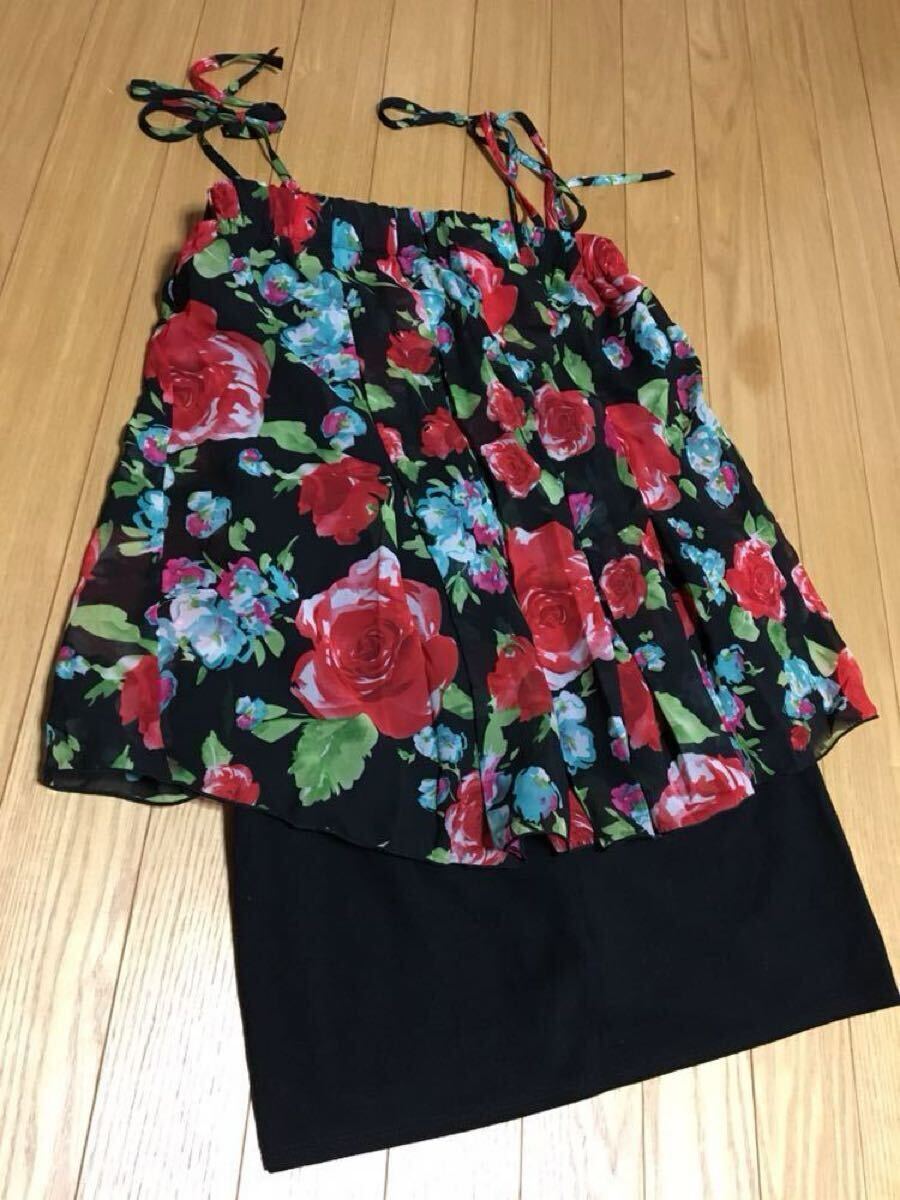- 新品タグ付 リエンダ フラワー シフォンプリーツ ミニ ワンピース / S ブラック