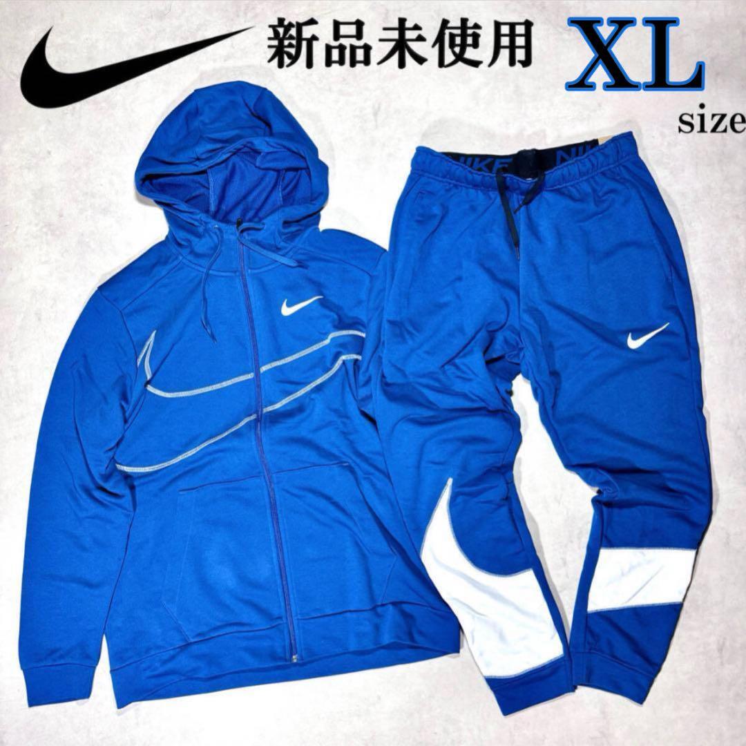 - 新品 XLサイズ ナイキ 上下セットアップ パーカー ジョガーパンツ フルジップ 青 白 ホワイト SWOOSH ランニング テーパード おしゃれ 人気