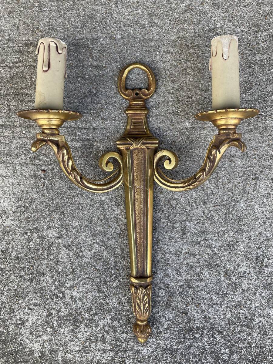 > 11. フランスアンティーク ランプ ブラケット ブロンズ 2灯 キャンドル ライト ウォール 壁 蚤の市 店舗 什器 カフェ 美容室.