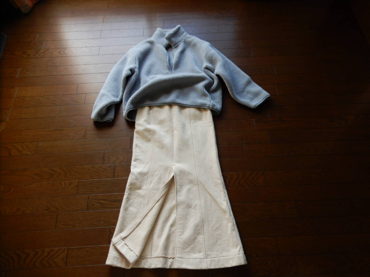 > 【 CLOCHE/クロシェ】日本製 洗える 裏起毛で暖か 大人可愛いウエストゴムマキシ丈スリット入り白ロングスカート