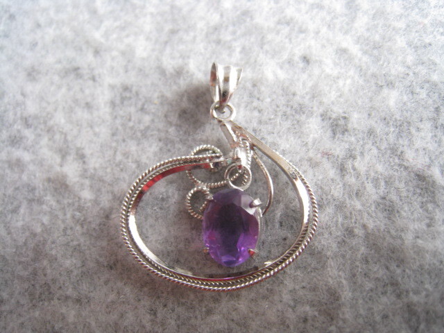 - [SAMU]綺麗!!きらきら天然アメジスト幅7.5mmx6.0mm シルバーペンダント 新品同様!