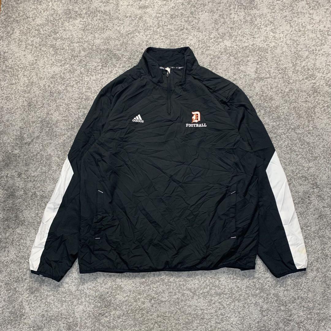 > 2XL アディダス ハーフジップナイロン 黒 刺繍 企業ロゴ ナイロンジャケット