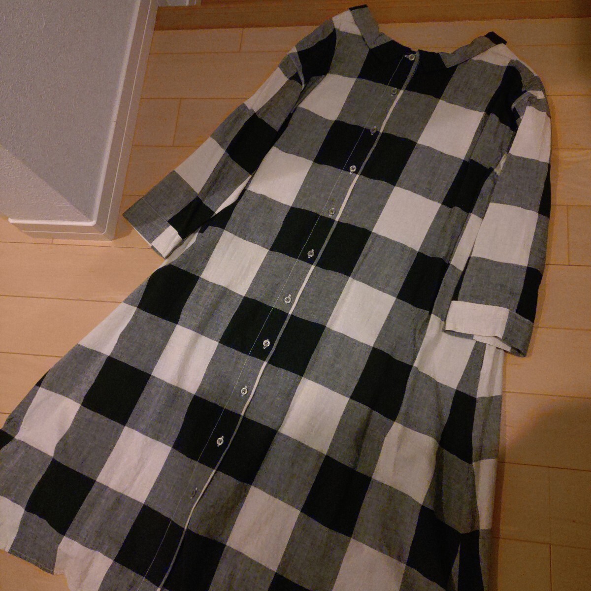 - スタジオクリップコットンリネンブロックチェック ワンピースシャツコートとして春ワンピース
