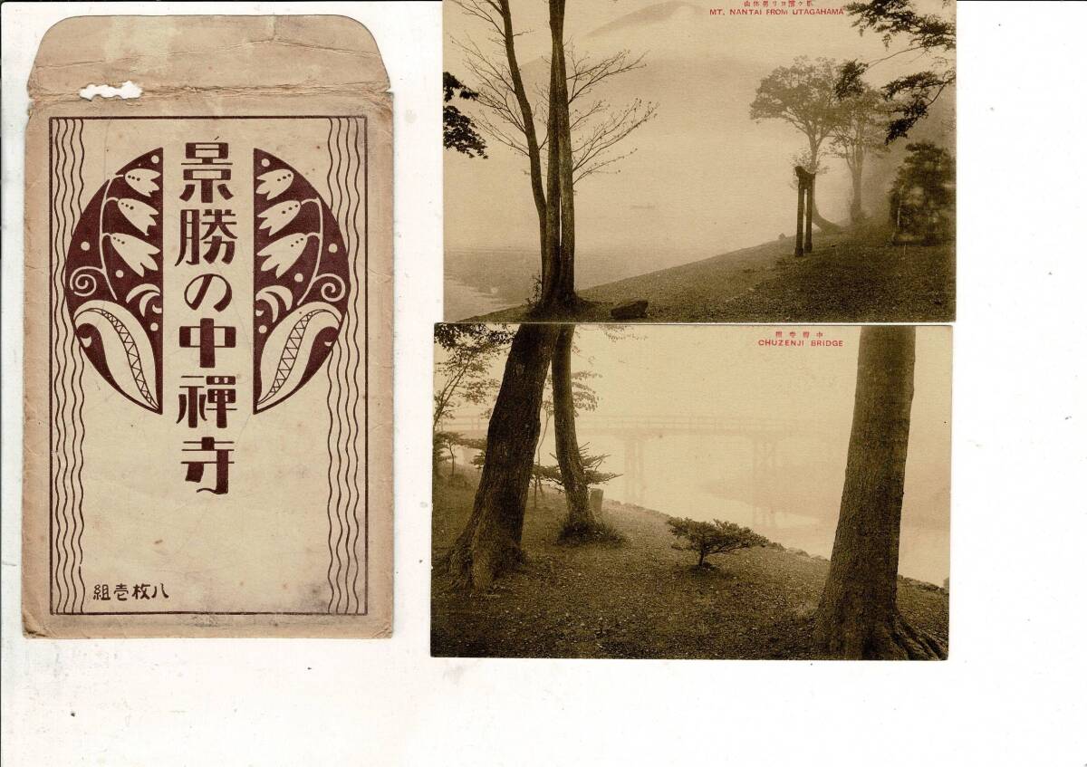 - 「景勝の中禅寺」レトロ絵葉書八枚壱組中6枚と袋 袋に虫損 観瀑紀念・探勝紀念スタンプ RPS06725MU13