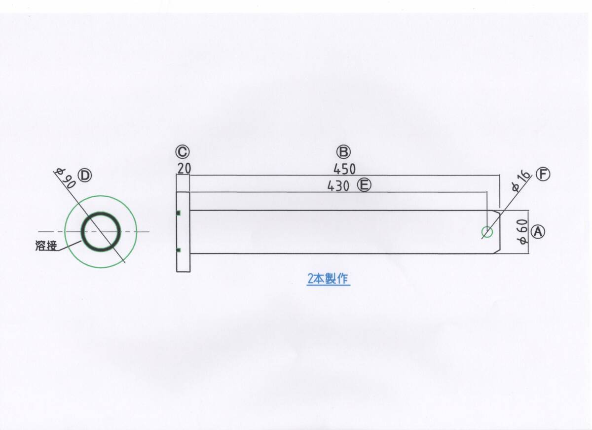 - NO 1970 Φ60用 溶接ツバ下450mm バケットピン 2本/ブッシュ4個