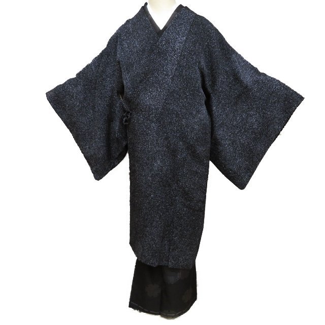 - コート 道中着 着物 中古 正絹 縮緬地 黒色 薄灰色 身丈109.5cm 裄66.5cm きもの北條 A1139-11