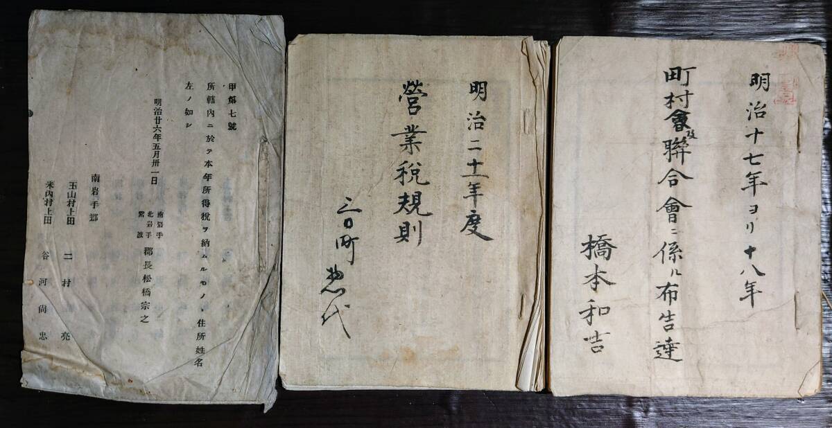 - 明治期、東北青森県 町村会連合に依る布告綴(明治17年)営業税規則(明治21年)など三綴