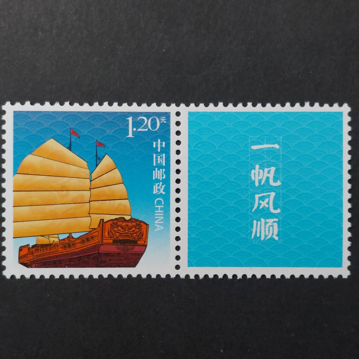 > K493 中国切手「ジャンク(帆掛け船)のデザイン切手(デザイン:ウー・シンニン)、タブ付き『一帆風順(順風満帆)』」2013年発行 未使用