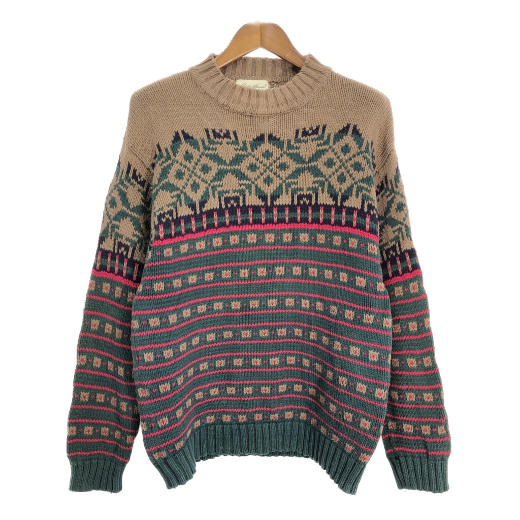 > 90年代 Eddie Bauer エディーバウアー コットン ニット セーター アウトドア 総柄 マルチカラー (メンズ L) 中古 古着 S8476