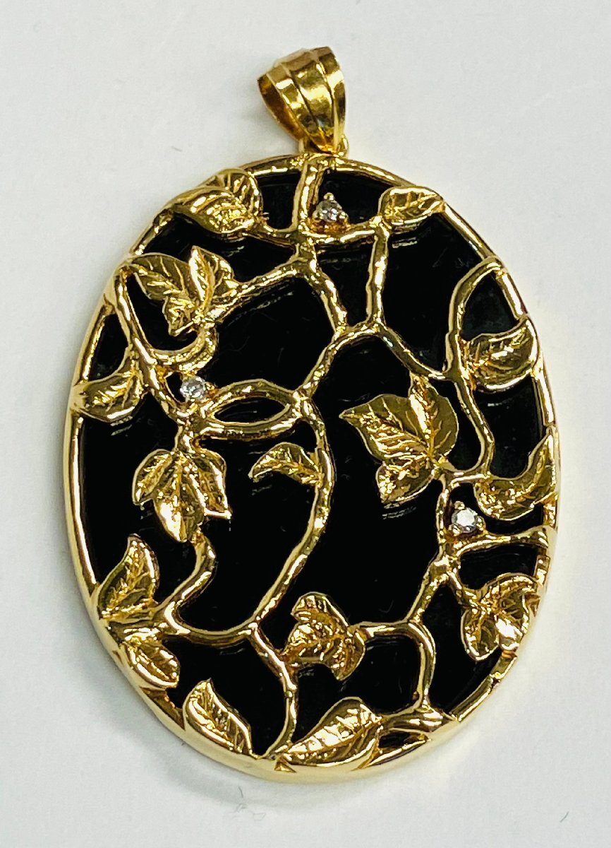 - qoj.Z8Y02 K18 ゴールド オニキス アラベスク ダイヤモンドペンダントトップ 3PD0.03ct