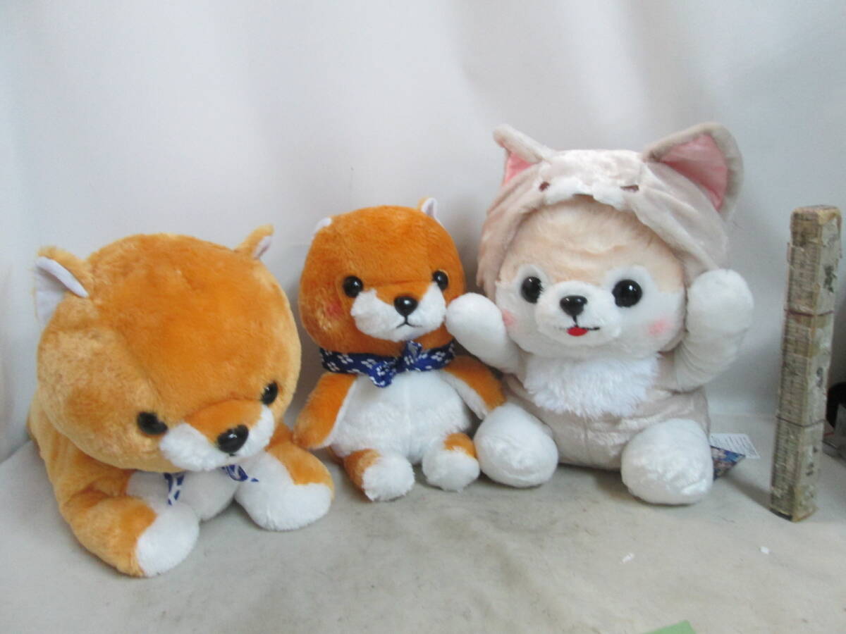 - 豆しば 三兄弟 ぬいぐるみ リュック+弟オオカミ+寝そべり ぬいぐるみ H45cm 3体でA送料は商品説明欄に記入