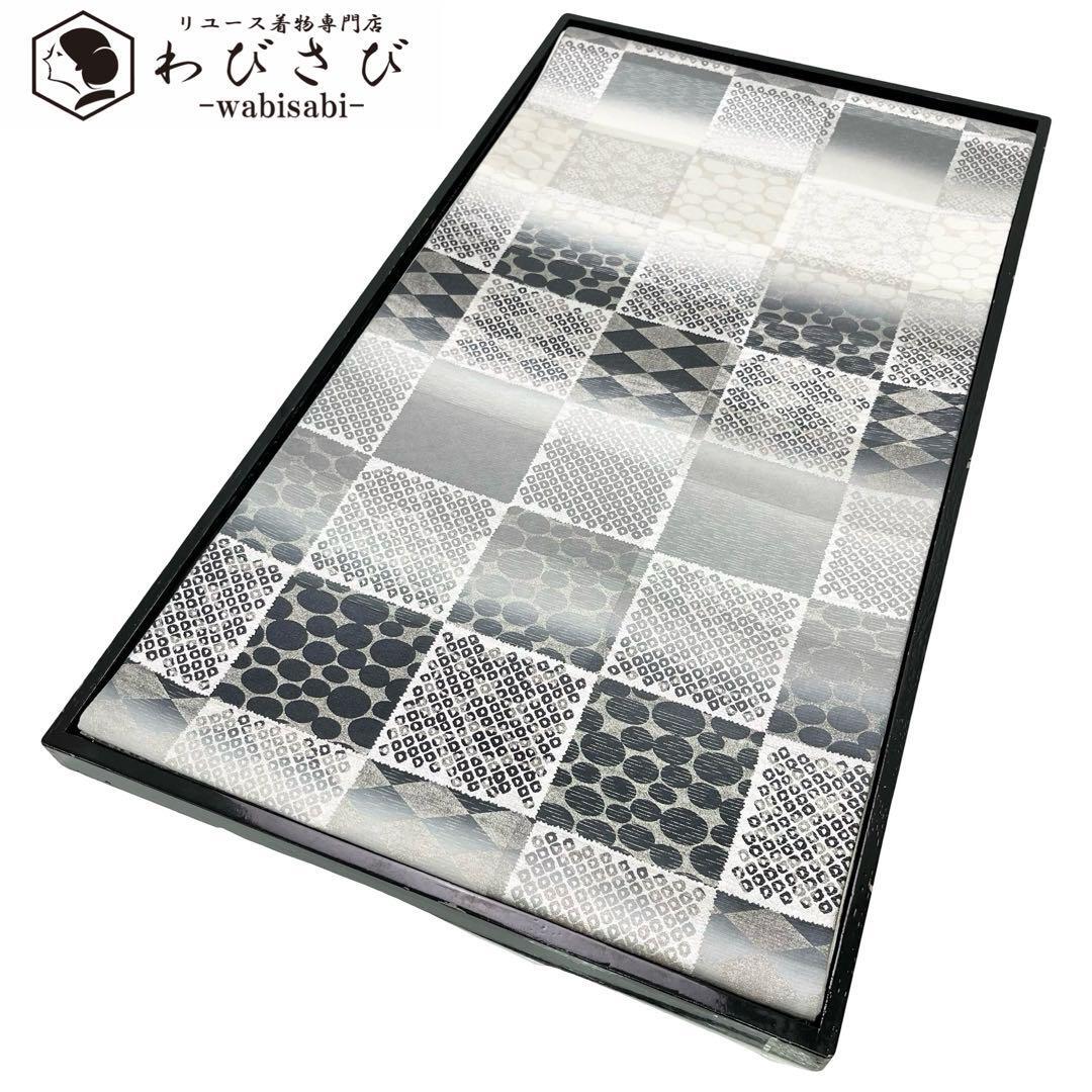 - 袋帯 一期一会 格子柄 モダンな染柄模様 銀彩 グラデーション O-4581