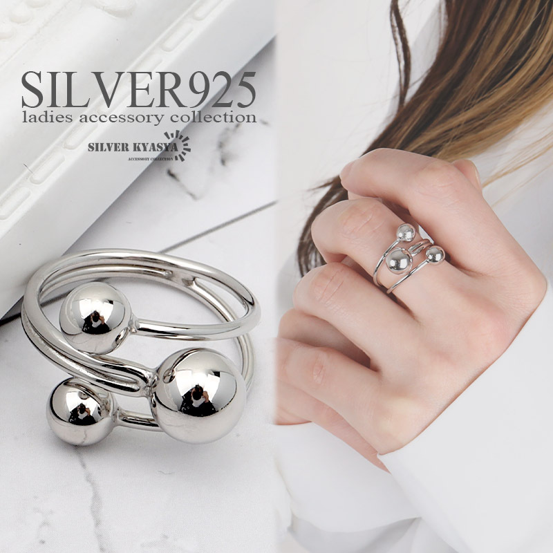 - シルバー925 オーブリング 球体リング フリーサイズ シルバー 金属アレルギー 銀 モード系